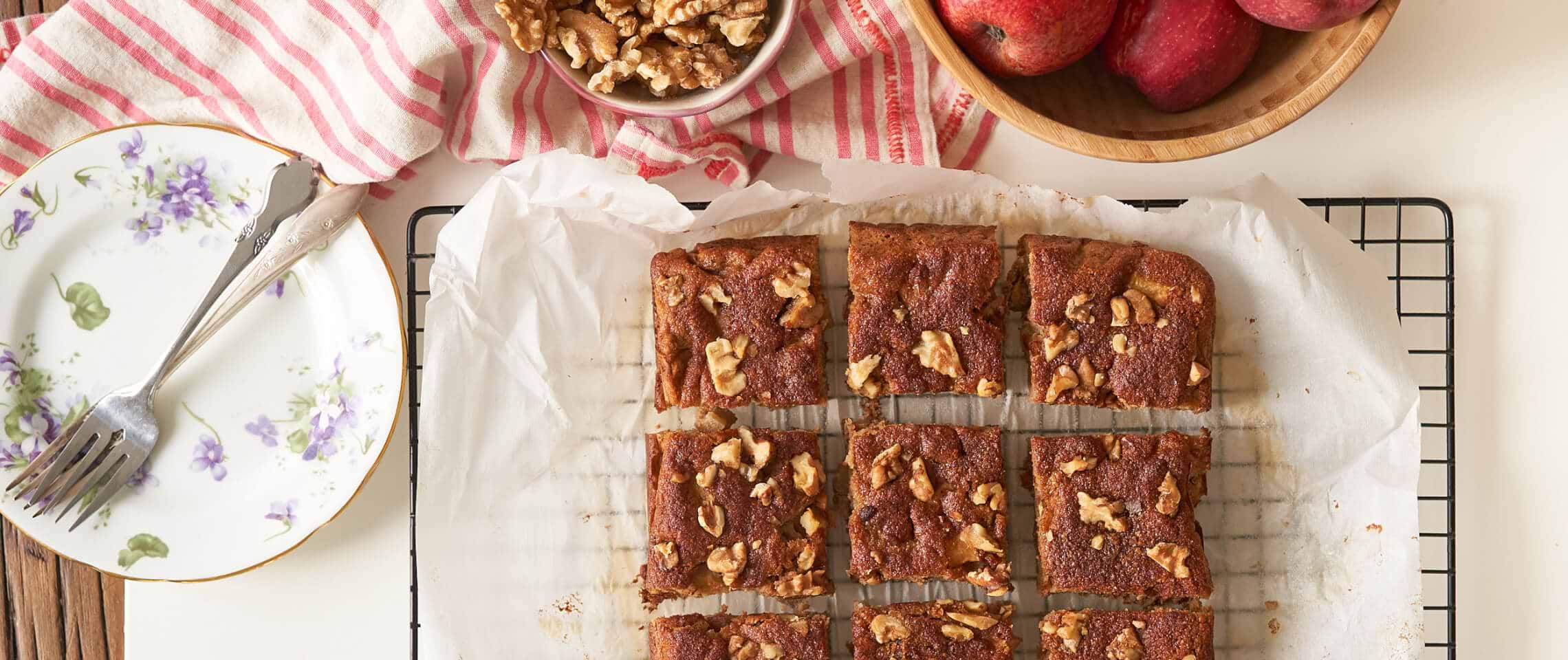This wonderful apple spice walnut cake is full of flavour, super moist and great as a snack with a cup of tea or a fulfilling dessert when you’re entertaining!