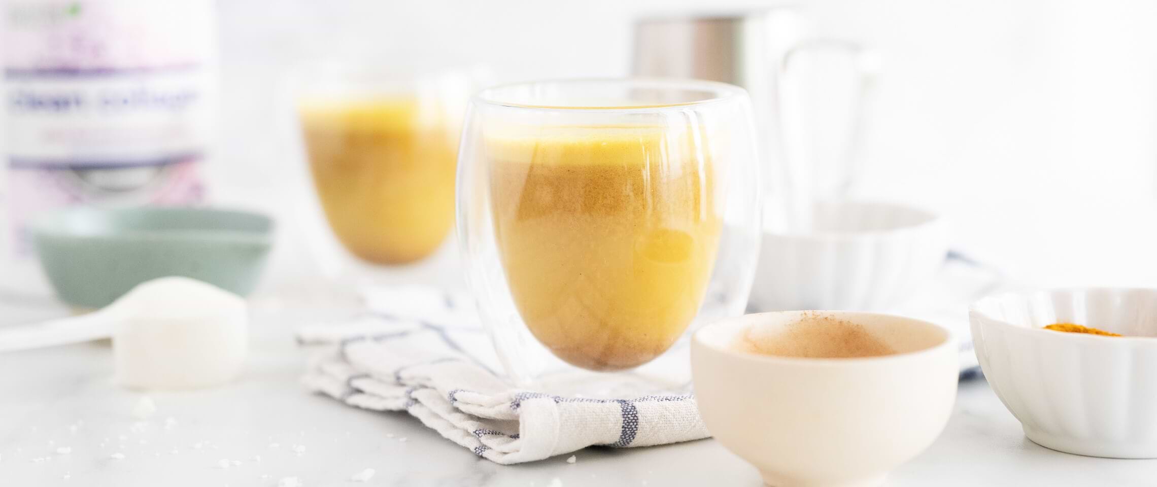 This turmeric collagen spice latte is creamy, spicy and delicious! Since it’s winter and I like spicy foods and drinks, I definitely upped the ante on the spice factor in this one. I added black pepper and cayenne.