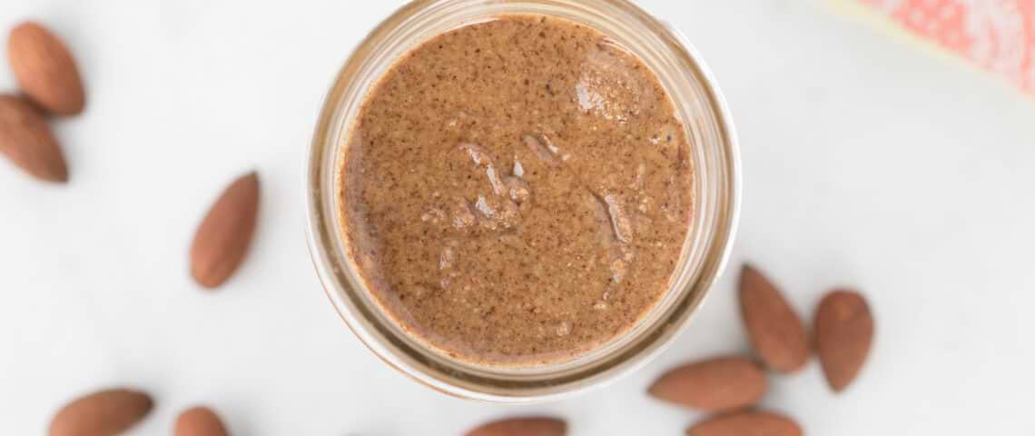 Making your own almond butter from scratch is easier than you think! It’s also the tasty almond butter you’ll ever eat!